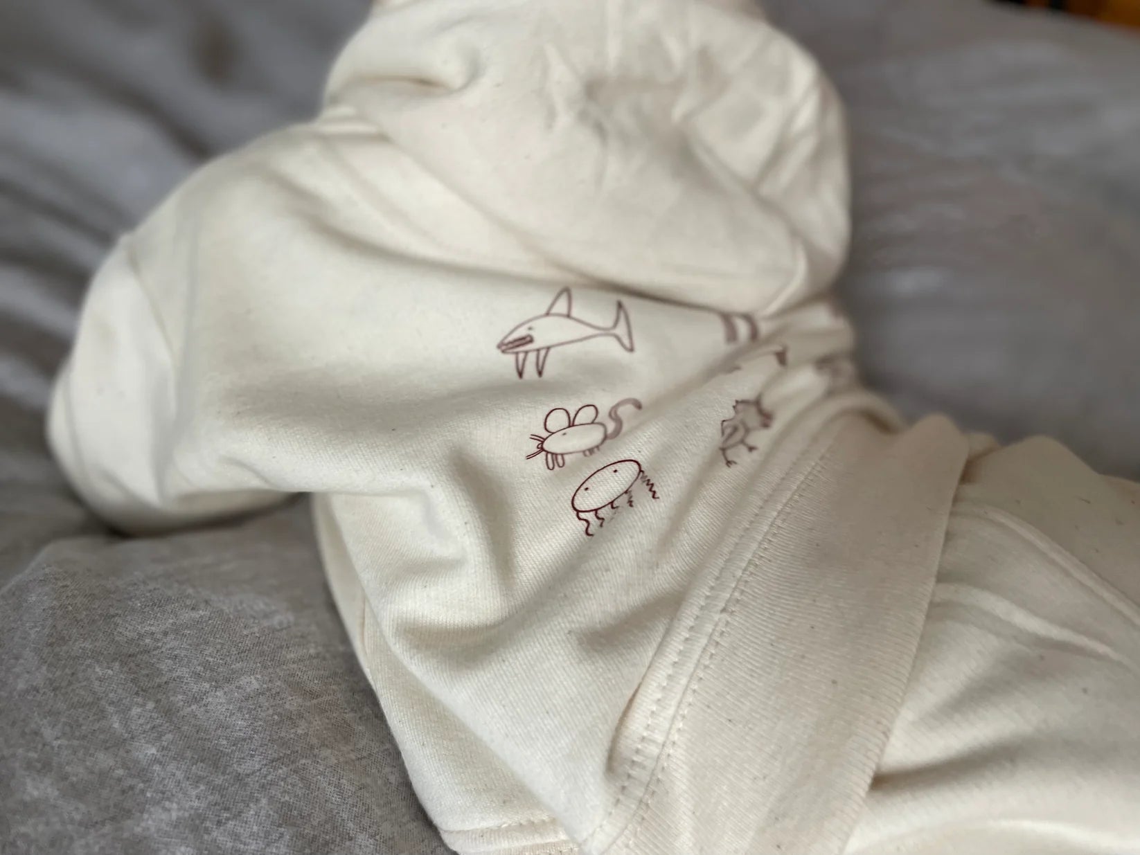Wir haben für euch zuckersüße, praktische, hochwertige Bodys im "Ugly Animals"-Style. Wir lieben die perfekten, unperfekten Tiere der Regensburger Marke und haben ein gemeinsames Ding daraus gemacht. Die selbstgezeichneten Tiere des Streetwear-Labels machen sich perfekt auf unseren Baby-Joggern. Wir präsentieren: Ein Schwein, einen Krebs, ein Krokodil und ganz viele andere Tiere als Backprint in modernster Farbauswahl.