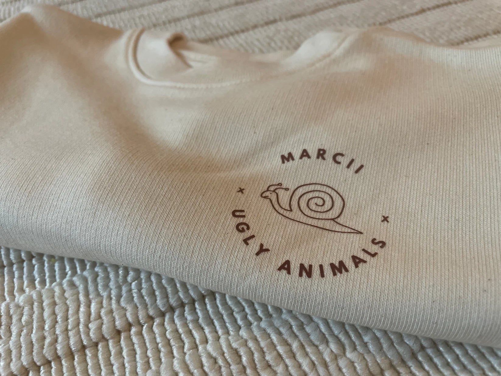 - Vorne: Ugly Animals & marcii logo + Schnecke