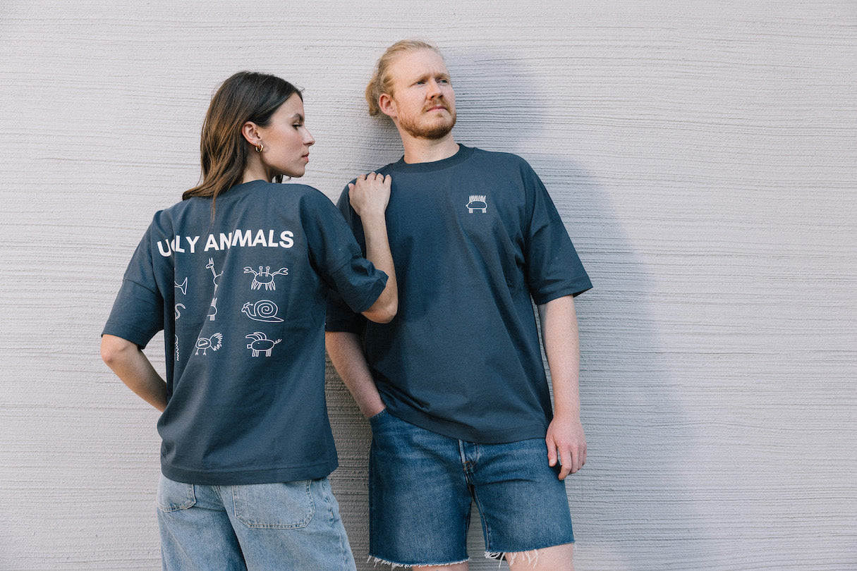 - Hinten: Ugly Animals Logo, verschiedene Tiere