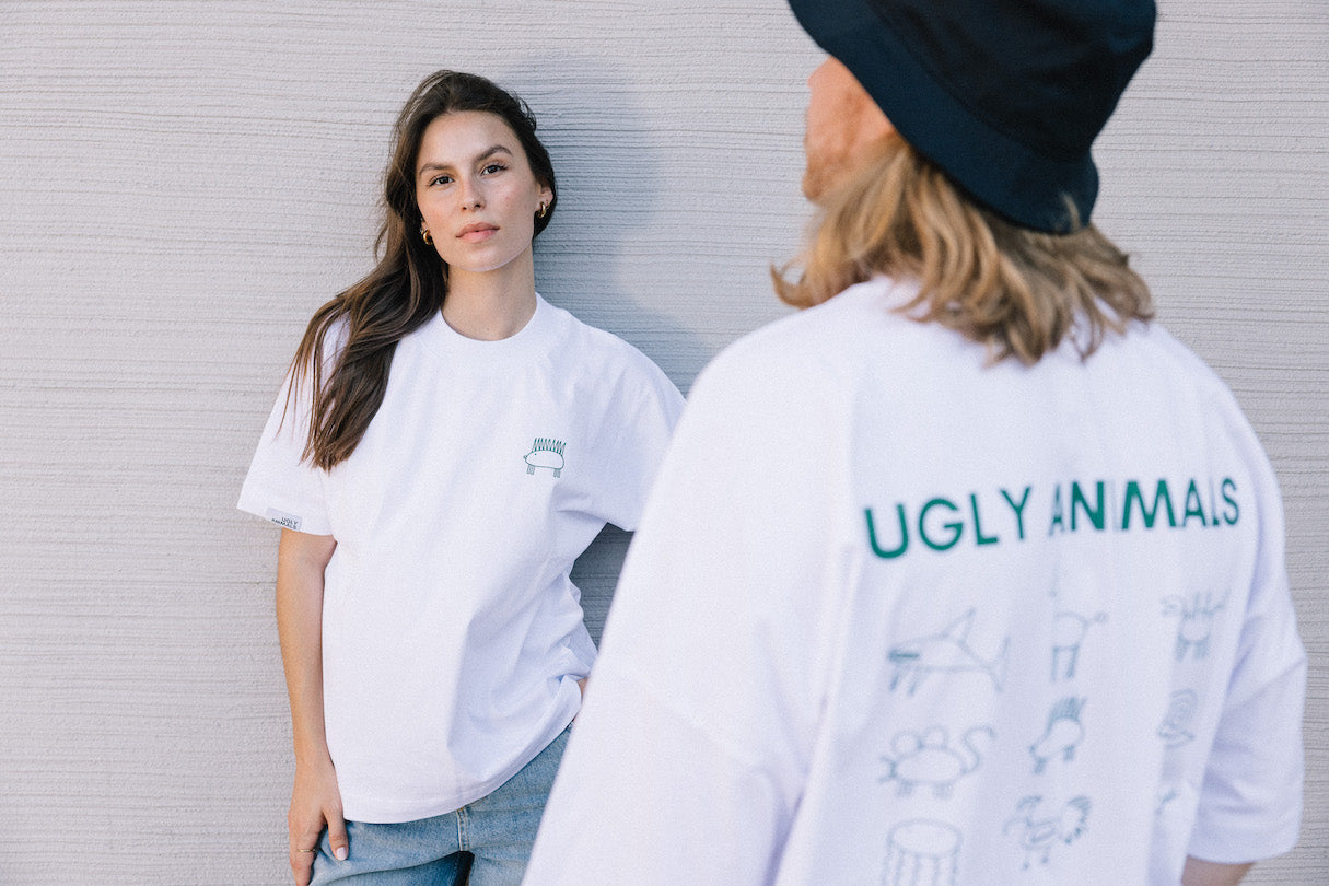 - Hinten: Ugly Animals Logo, verschiedene Tiere