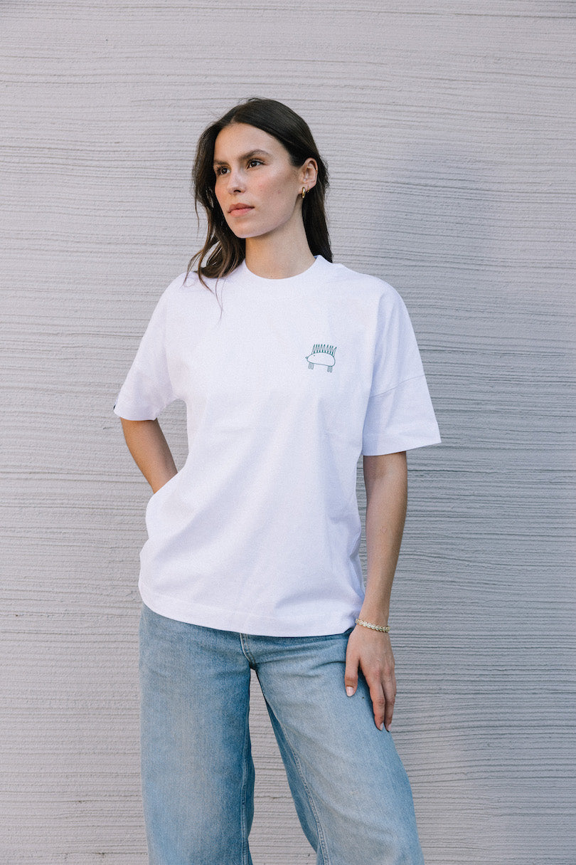 Andrea H Ich mag den lockeren Schnitt , die Qualität , oben das Bündchen und den kleinen Igel vorn . Such a fun top and great service ! Danke